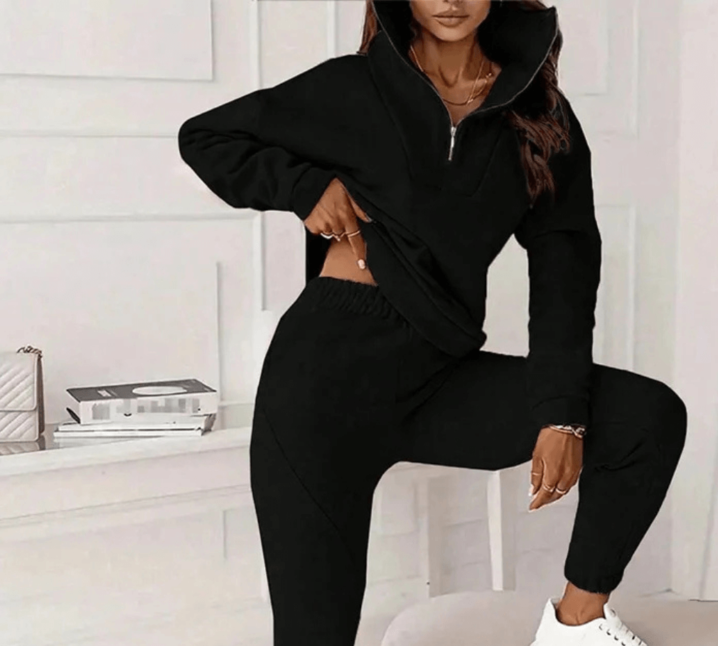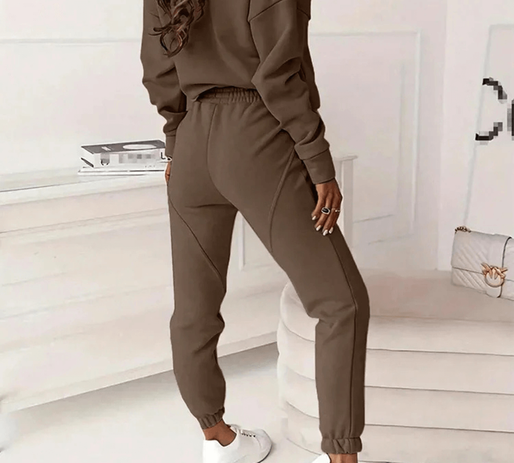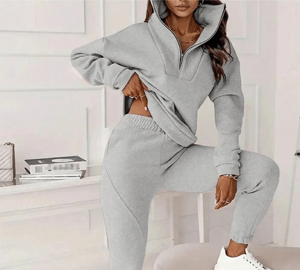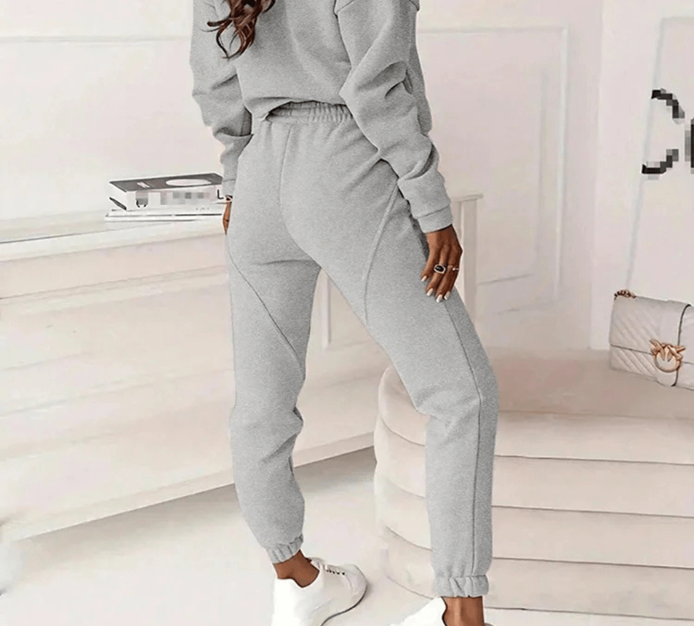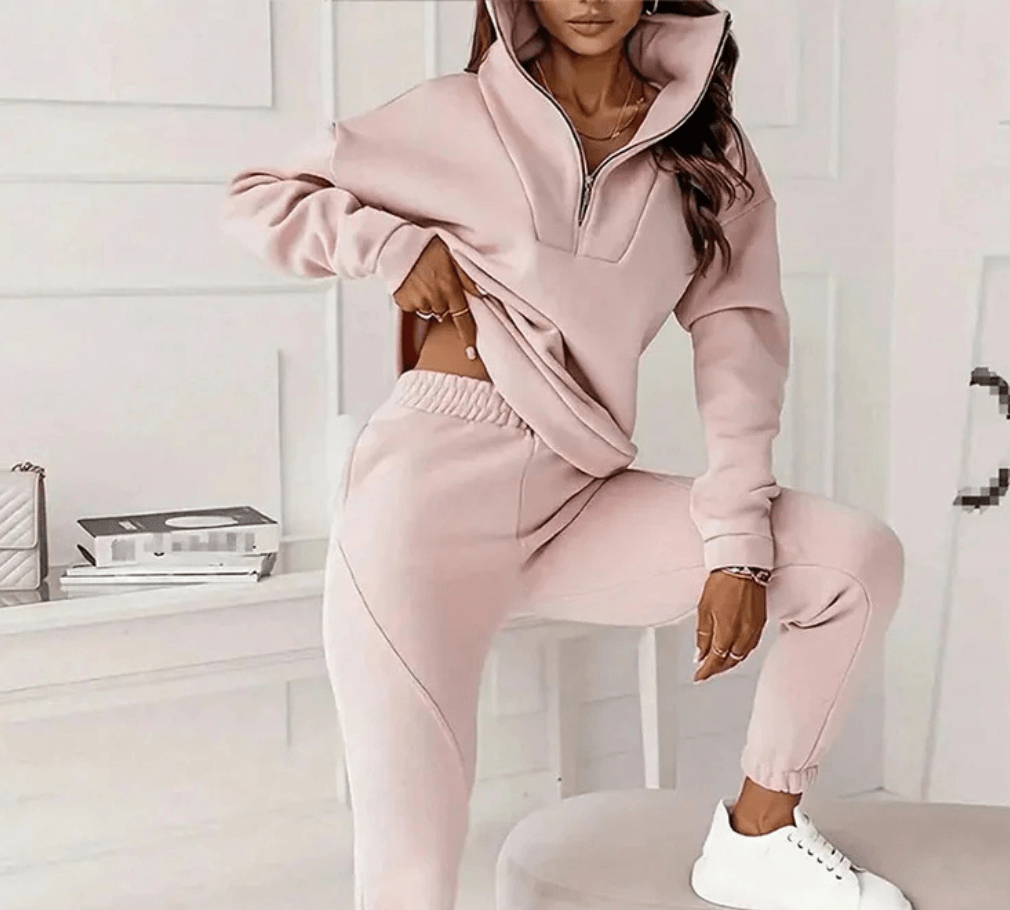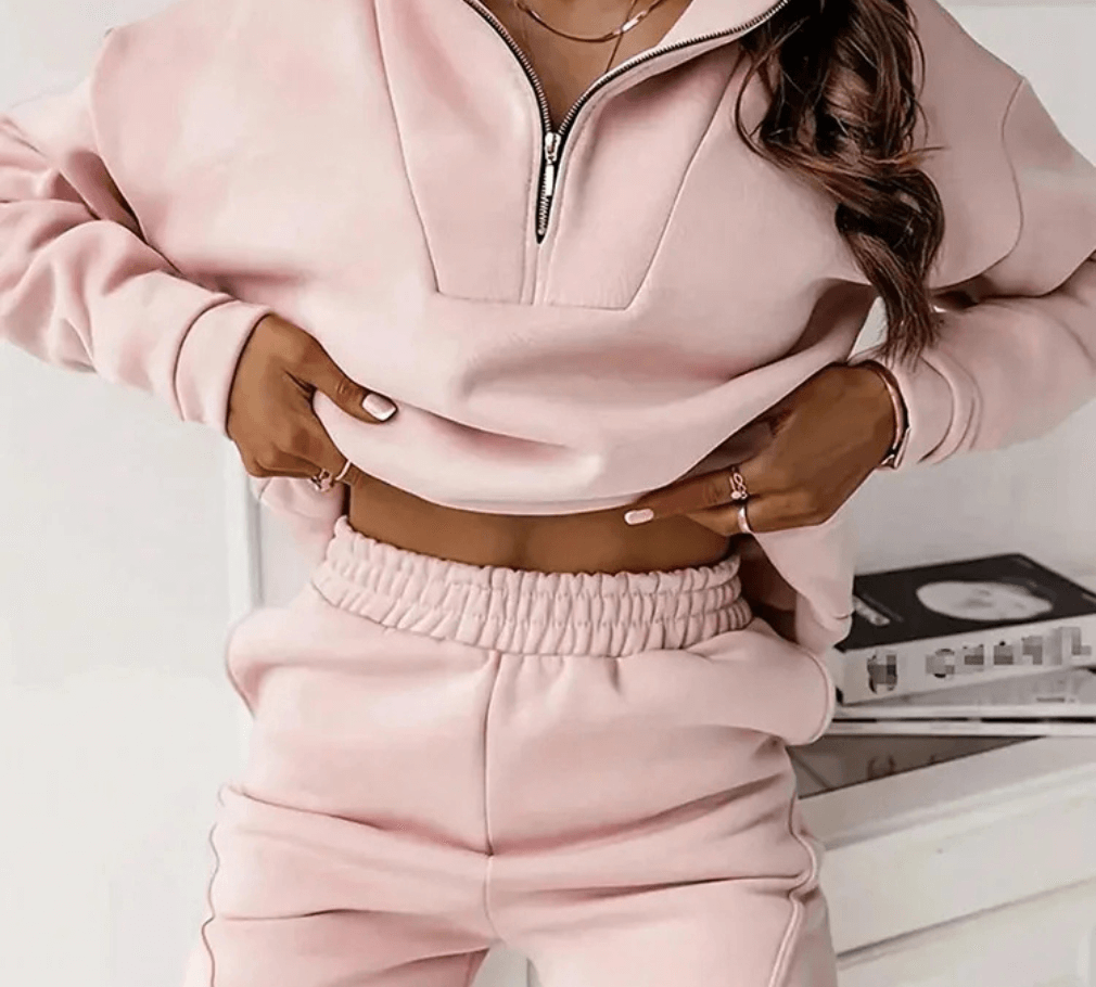 Die weiche hochwertige Qualität sorgt für ein angenehmes Tragegefühl und hält Dich auch an kühleren Tagen warm. Die elastische Passform und das sportlich-feminine Design machen diesen Anzug zum perfekten Begleiter – ob auf dem Weg zum Fitnessstudio, beim Spaziergang oder beim entspannten Tag zu Hause.