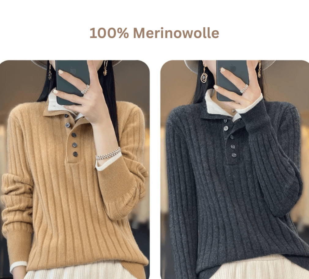 Dein Must-have für den Winter – Damenpullover aus 100 % Merinowolle mit Poloausschnitt