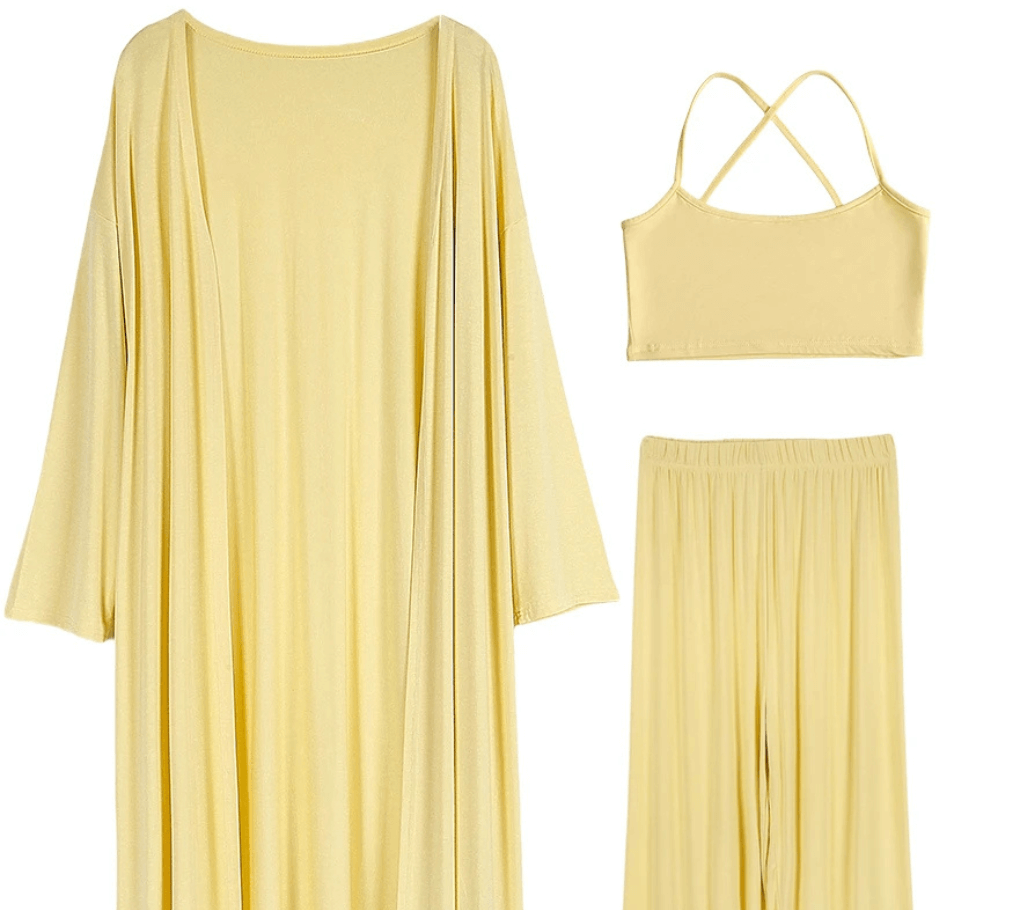 Komfort trifft auf Stil: Dieser 3-teilige Freizeitanzug vereint mühelos lässigen Casual-Look mit eleganter Ausstrahlung. Bestehend aus einem schlichten Top, einer bequemen Hose und einem modischen Umhang ist dieses Set der perfekte Begleiter für entspannte Tage mit Stil – ob zu Hause, unterwegs oder beim Treffen mit Freunden.