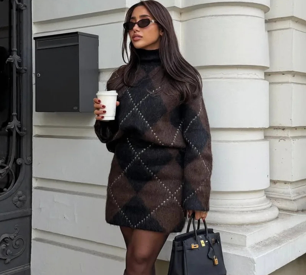 Mini Rock & Pullover mit Rautenmuster - im weichen Strick zum wohlfühlen